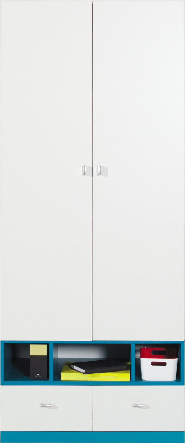 Hledáte úložný prostor do pokojíčku vaší ratolesti? Pořiďte si dvoudveřovou šatní skříň Poly 2, jejíž prakticky navržený úložný prostor má podobu horní části vybavené policí a šatní tyčí, 3 přihrádek a 2 výsuvných šuplíků.