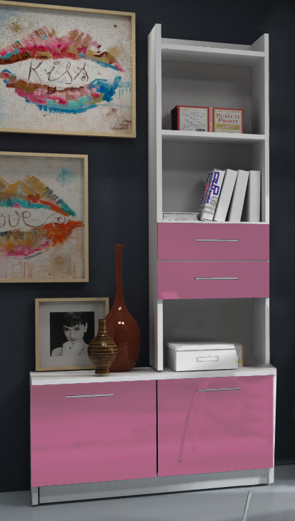 V dětském ani studentském pokoji by neměl chybět nábytek v originálním barevném designu. Regál Adele 1 má úložný prostor dělený na 3 velké police, 2 šuplíky a 2 spodní skříňky. Nabízí tak dostatek prostoru k vystavení dekorací nebo suvenýrů.