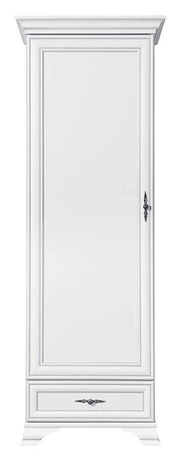 Policová skříň Lettore 3 – bílá v bílé barvě má kromě polic také praktický šuplík umístěný ve spodní části. Její zdobné úchytky mají také praktický význam.