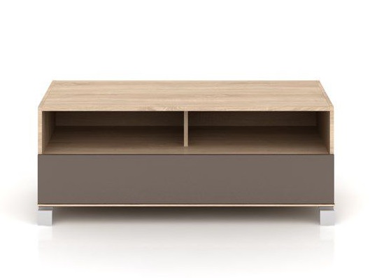 Do 2 otevřených polic dejte satelitní přijímač i Blue-ray přehrávač. Záruční listy, návody i doplňkovou kabeláž ke všem přístrojů si uskladněte v prostorném šuplíku s pomalým dojezdem. Otvor pro zapojení elektroniky je samozřejmostí. Stolek z odolného lamina nepotřebuje zvláštní péči a bude vám sloužit mnoho let.